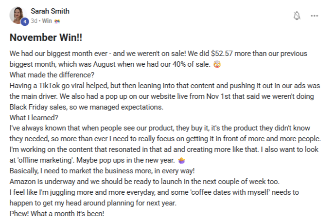 Community of like minded ecommerce owners at the same stage as you